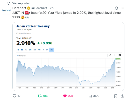 Japan 20Y at ~2.92% (’98 highs) = the wall just moved.