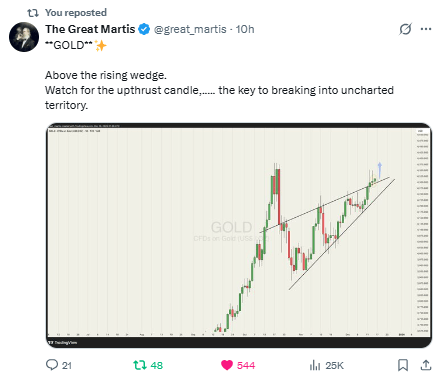 Net: hold above the wedge with a strong close → gold’s next leg likely accelerates; slip back inside → patience until the market proves it.