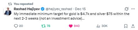 This content is for educational purposes only—not financial, legal, tax, or investment advice. I’m not a licensed advisor, and nothing herein should be relied upon to make investment decisions. Markets change fast. While accuracy is the goal, no guarantees are made. Past performance ≠ future results. Some insights paraphrase third-party experts for commentary—without endorsement or affiliation. Always do your own research and consult a licensed professional before investing. I do not sell metals, process transactions, or hold funds. All orders go directly through licensed dealers.