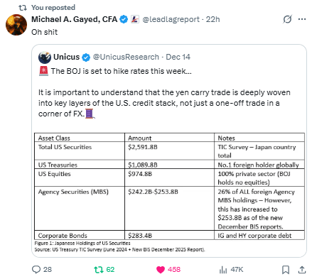 What that means stateside: less marginal demand for Treasuries/MBS, wider credit spreads, more equity multiple pressure, and intermittent liquidity air-pockets as carry positions unwind.