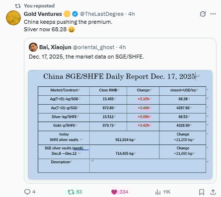 China’s SHFE is draining and trading at a premium = Asia is physically pulling silver East.