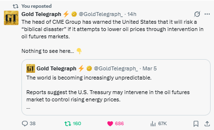 - CME Group Warns US of a "BIBLICAL DISASTER" If It Intervenes In Oil Futures Markets To Lower Oil Prices, Chain Reaction In Private Credit Stress Continues, Yen Approaching Critical Levels for Global Markets as US Taps Into ~41% of Oil Reserves