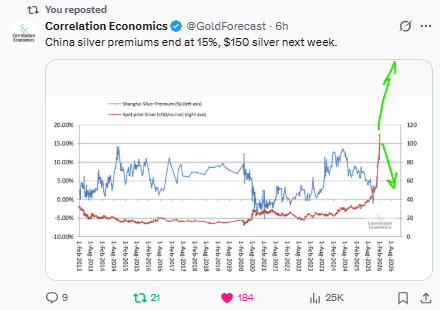 When the East (more physical demand in their market) is willing to pay a double-digit premium for physical silver, it’s not a “technical indicator” — it screams “Hey, this is the real price.”