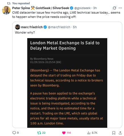 When foundational resources (metals) signal regime stress via price, the market’s plumbing conveniently malfunctions.