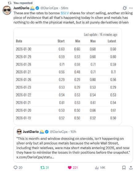 - CME & LME “Technical Issues” During Price Surges, Surging SLV Borrow Costs, Shanghai Silver Premium at 15%, SHFE Silver Inventories Are Plunging, SLV Market Cap Doubled Over 100 Days