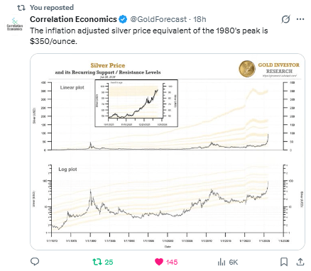 That’s where price would be if silver had kept pace with inflation — let alone the hyper-financialized world we now live in, where debt has gone vertical and trust in fiat is evaporating.