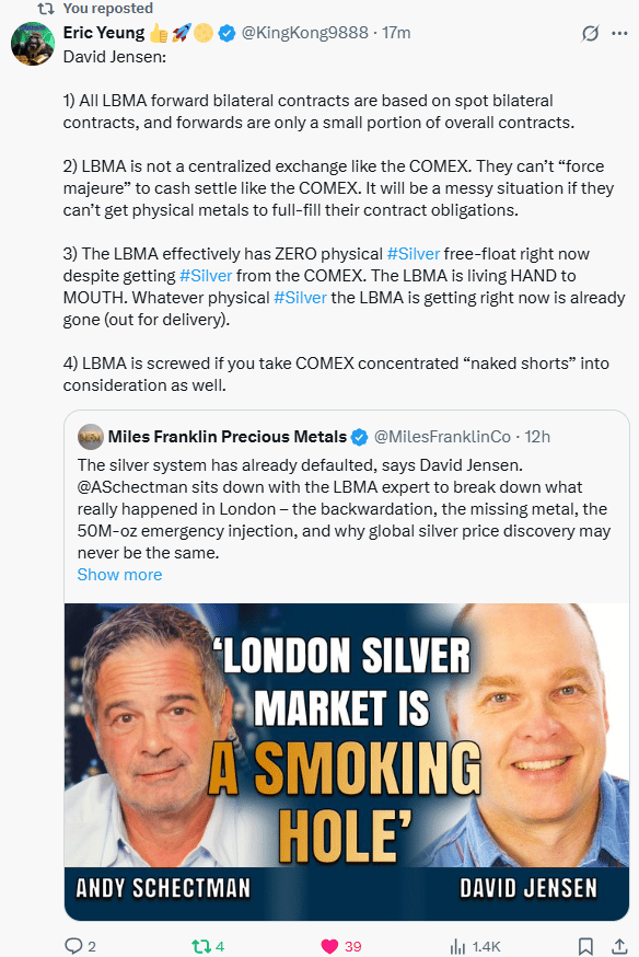 LBMA is nearly out of free-float silver.