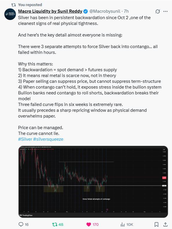 If they can’t push the curve back to contango, it means the physical tightness is stronger than their paper games.