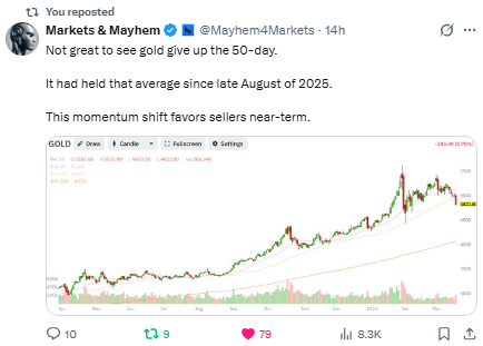 Gold breaking the 50-day = short-term positioning / liquidity