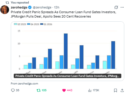 - 🚨Credit Default Swap Index Surges To 9 Month High, Private Credit Contagion Continues, Precious Metals' Price Plummets While Structural Signals Suggest Next Leg Higher Just Got That Much Bigger