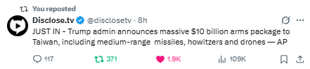 Pair that tone with a $10B Taiwan arms package (and Venezuela situation heating up) and you don’t have diplomacy—you have escalation.