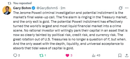 The indictment of Jerome Powell—true or not—is now a narrative accelerant.