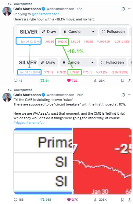 …the big banks just got their chance to cover silver shorts at fire-sale prices during an orchestrated smash — possibly coordinated with suppressed COMEX circuit breakers and Fed market interventions.