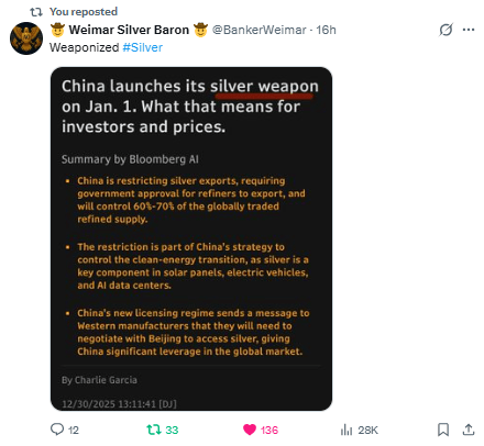 "Silver isn't just rallying. It's breaking into a 'new reality' of price discovery..." Rumors Circulating Regarding Volatility In Silver, CME Hikes Margin Requirements in Silver AGAIN For The Second Time In 3 Trading Days, China To Control 60-70% Of Tradable Silver Supply, $70.40 Current Level That Needs To Hold