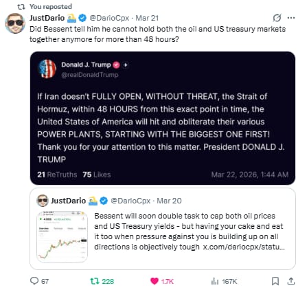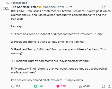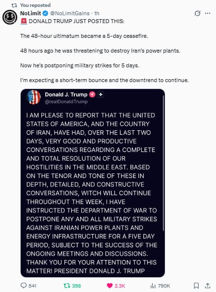 Which means the market violently repriced a de-escalation headline before that narrative was even firmly established.