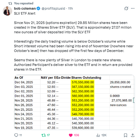 ~30M new SLV shares (~27Moz) since Nov 21 = real demand.