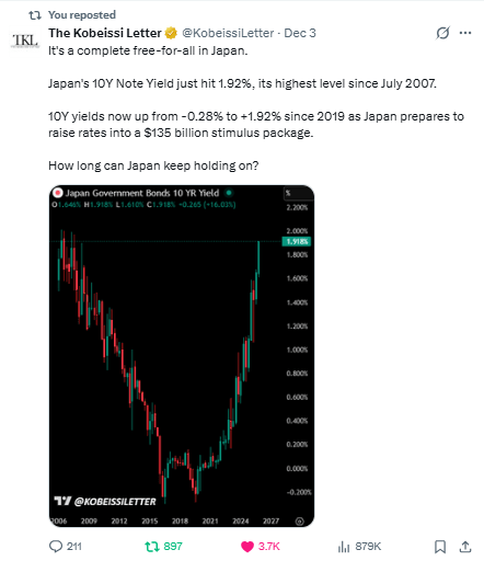 10Y JGBs at 2007 highs = BOJ losing grip → yen carry snaps → forced de-risking everywhere.