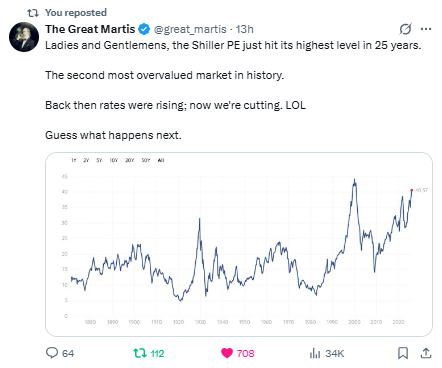 That cocktail—very high valuations + easier money—usually means one of two things must adjust: prices or earnings.