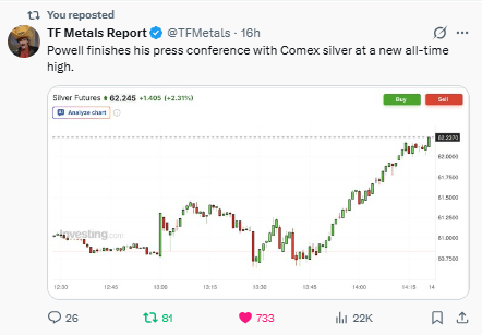 Powell speaks, the market hears repression, and silver rips to fresh ATHs.