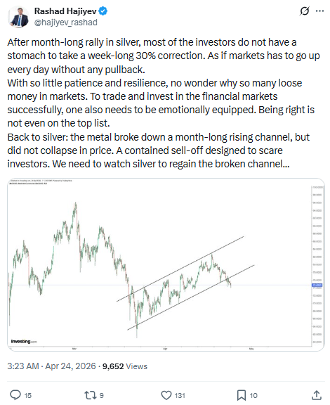 First, the capitulation: a week-long 30% correction in silver after a month-long parabolic rally.