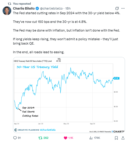 Translation: The market keeps pretending Fed cuts = lower rates.
