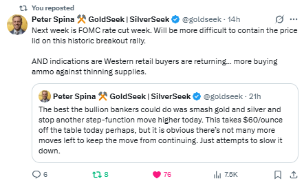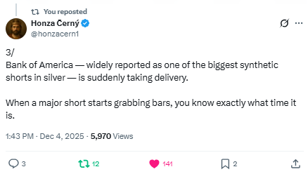 Silver Closes At Yet Another All-Time Weekly High While Shorts Standing for Physical Delivery, Western Retail Buyers Are Starting To Enter The Market, India's Central Bank Just Cut Rates, And Real Borrowing Costs Are No Longer Obeying Fed Rate Cuts