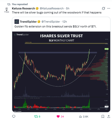 If price holds above the neckline, you get air-pocket mechanics: shorts forced up the ladder, underweight funds chasing, and retail “silver bugs” piling in late.