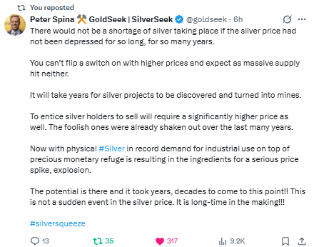 He’s saying the quiet part out loud: this “shortage” was baked in by decades of suppressed prices that starved new mines and flushed out weak hands.