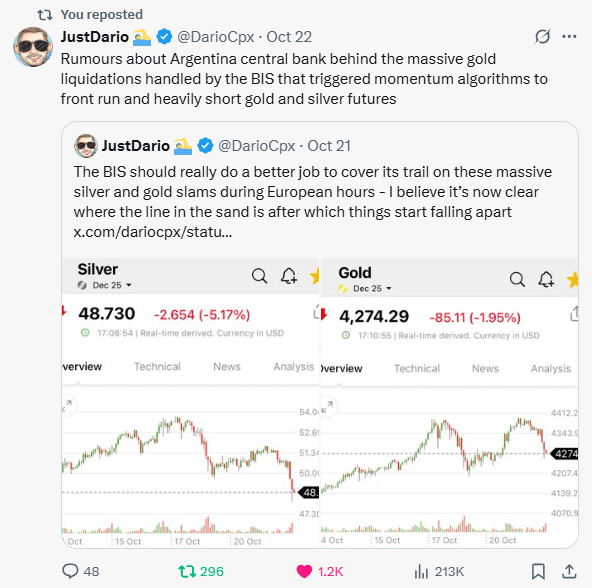 A big seller (Argentina) offloads gold through the BIS during thin European hours.