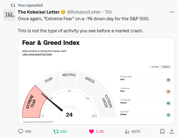 Extreme Fear on a –1% day = a market wired with gasoline.