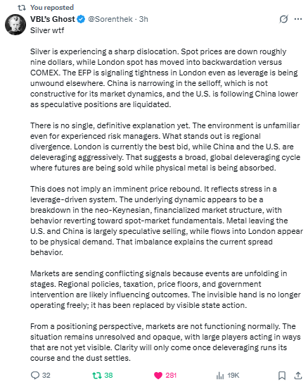 The market isn’t broken — the price discovery mechanism is.Paper markets can crash prices, but they can’t stop physical accumulation when participants stop trusting leveraged claims.
