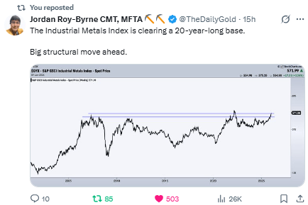 The breakout from a 20-year base in the industrial metals index is a major technical and macroeconomic signal — and here's why it matters: