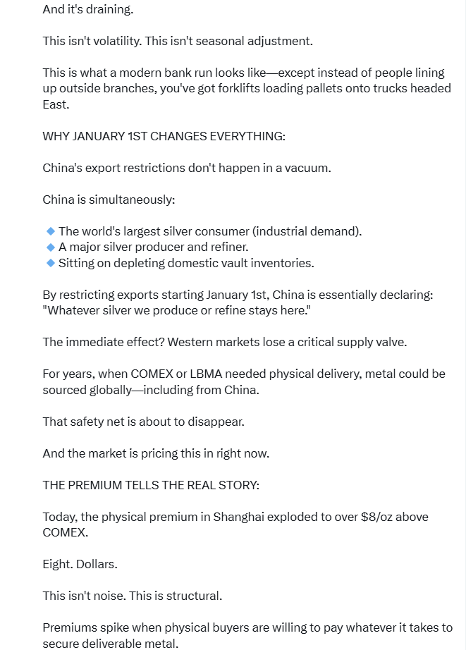 - Silver Trading Over $80 In China Ahead Of Export Restrictions Starting In January, China Silver Inventories Are Falling Faster Than Price Is Rising, China Silver In Backwardation While 1 Year Silver Swap Minus The US Interest Rate Is Almost -7%
