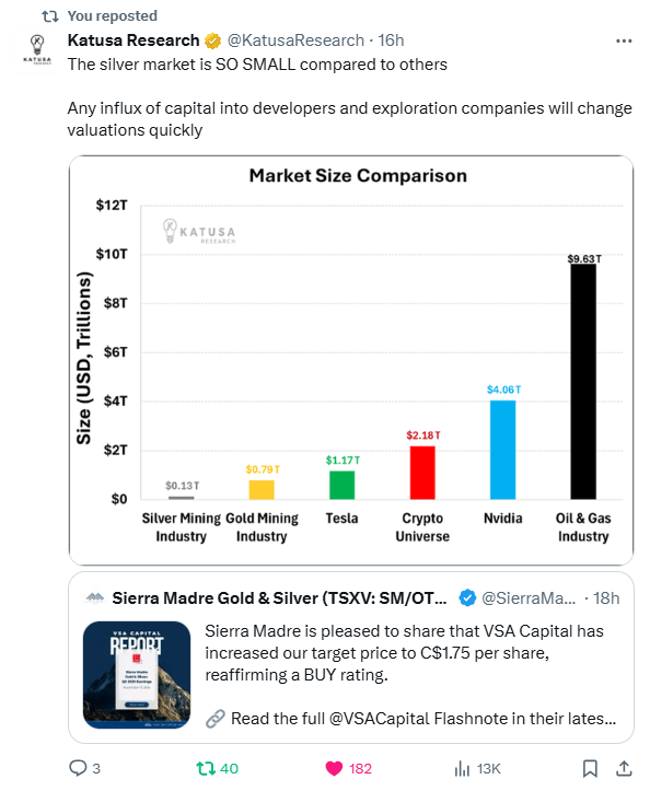 The silver mining industry is $0.13 trillion—a rounding error next to Nvidia ($4T) or Oil & Gas ($9.6T).