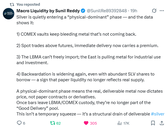 Even with plenty of SLV shares to borrow, that doesn’t create new bars—price is being set by what can ship today, not promises tomorrow.
